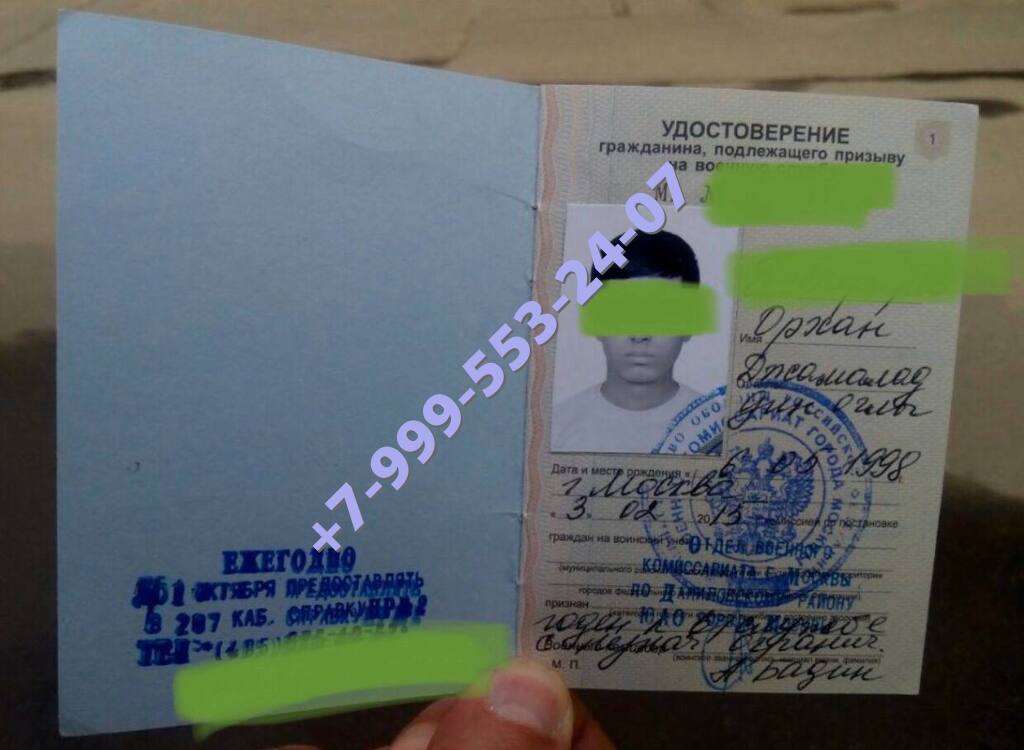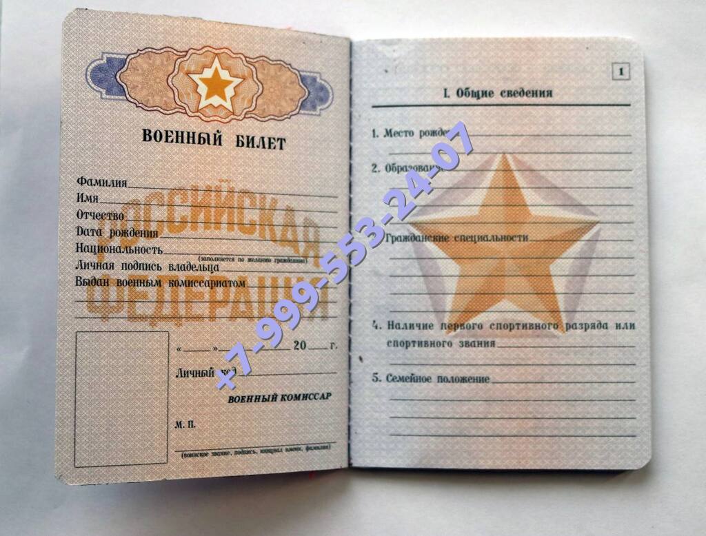 Внешний вид у него обычный, как у маленькой книжечки, цвет бледно-голубой. Внутри документа есть фотография призывника, печать военкомата, личные данные о человеке. Также у свидетельства есть знаки отличия, которые нужны для защиты от подделки.